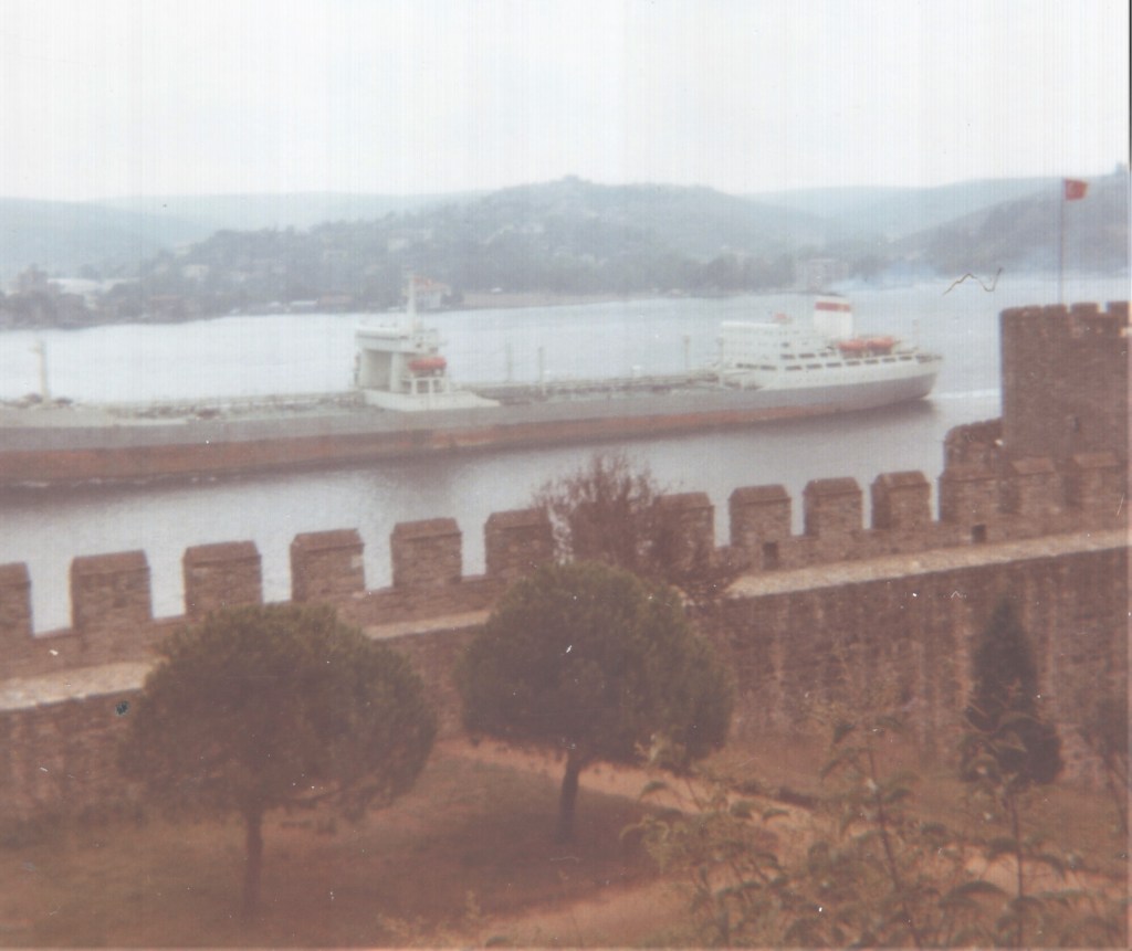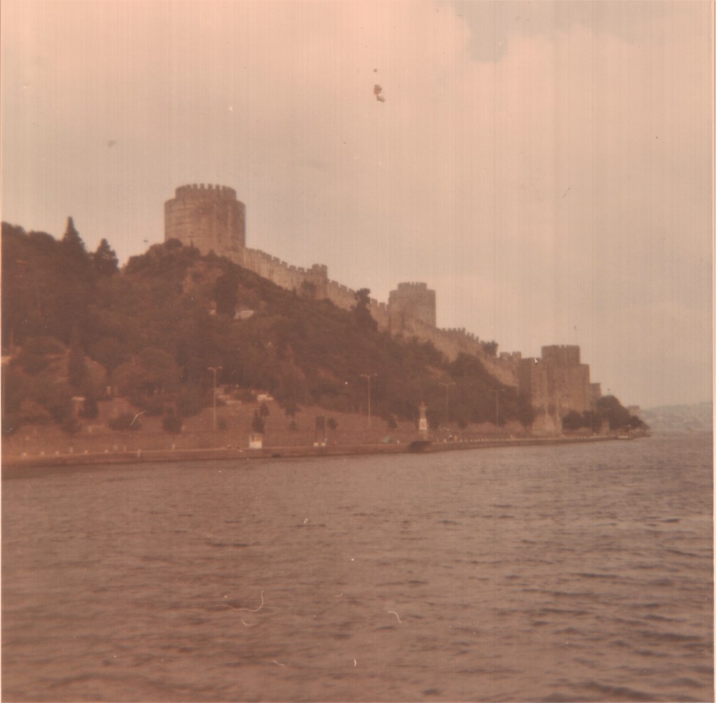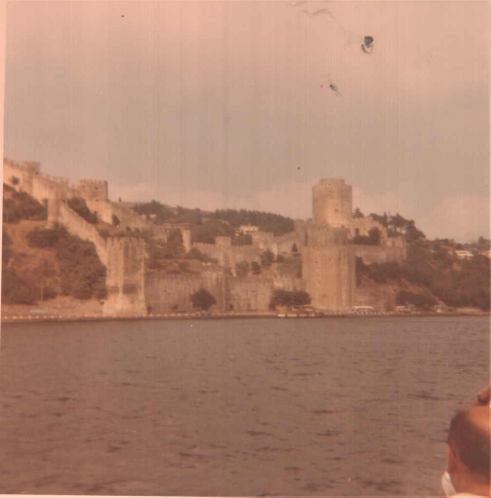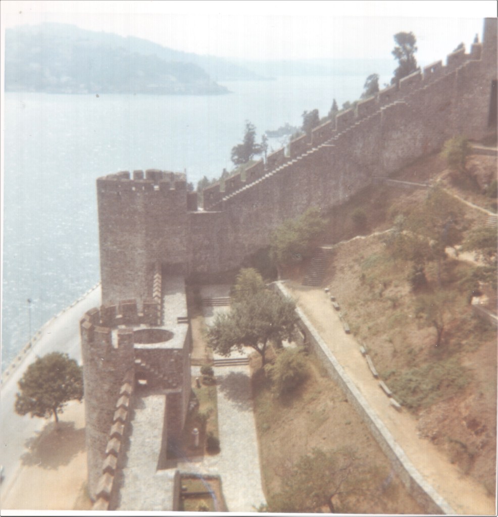 From my visit to the site in the summer of 1971. Rumelihisarı (“Roman Fortress”) was built in 1451-1452 by Sultan Mehmet II (“The Conqueror”) on the west side of the Bosphorus north of the city walls of Constantinople. With its counterpart Anadoluhisari (“Anatolian Fortress”) on the Asian side of the strait it cut off all access to the city from the north during the siege of Constantinople in 1453.